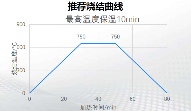 推荐使用热风隧道炉150℃/2-5min干燥后,再进入7温区隧道炉烧结,800-850度保温10-15min。
